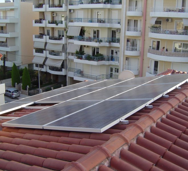 Το εγκατεστημένο φωτοβολταϊκό σύστημα συνολικής ισχύος 4,95 KWp, αποτελούμενο από 22 πλαίσια ισχύος 225 W της εταιρείας Schüco (MPE 225 PS 09 Poly), μοιράστηκε ως εξής: